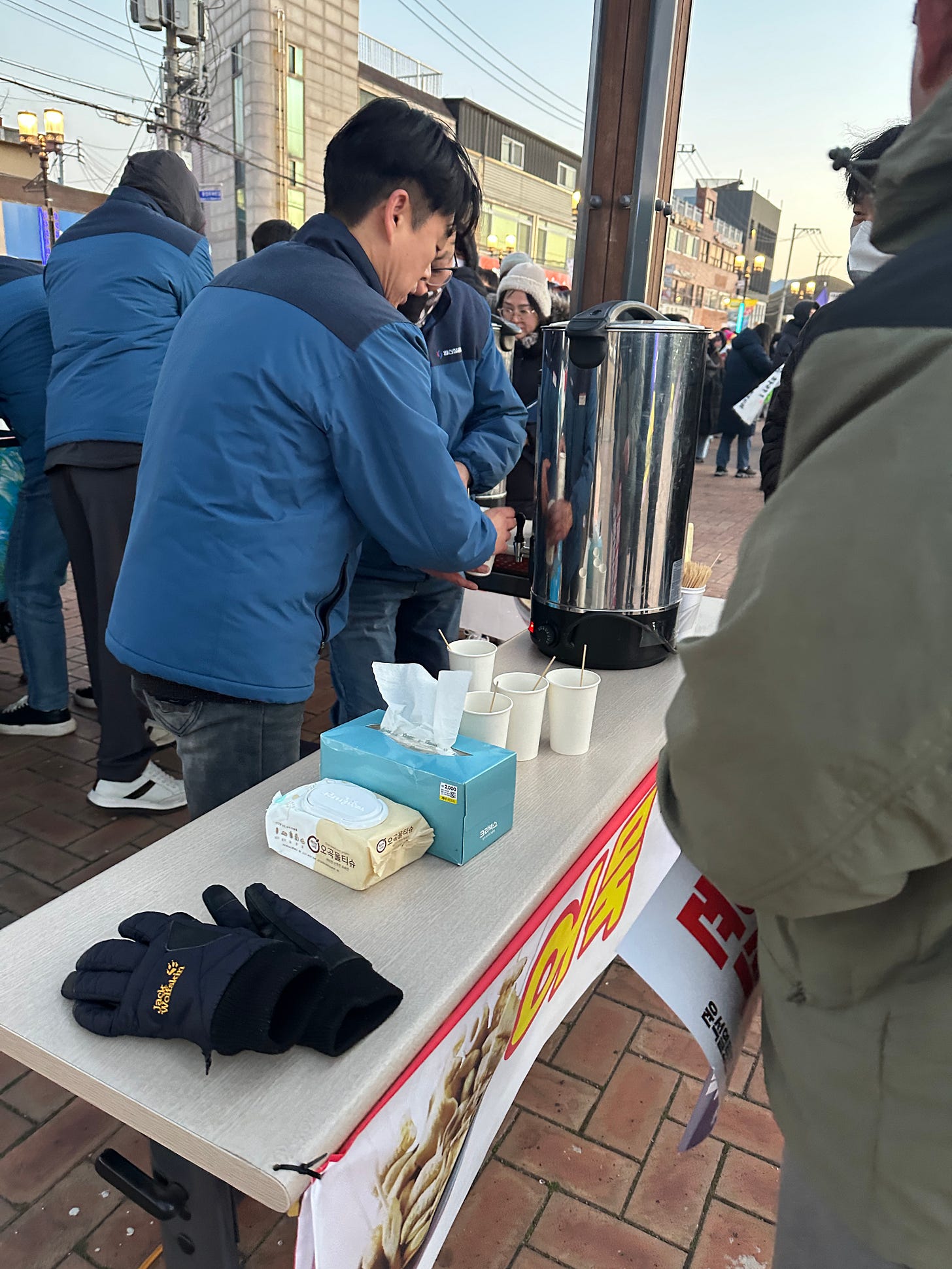 I returned to the venue of the peaceful rally by 10 mins-foot, and the crowd had grown even larger, with more people arriving to distribute hot drinks and snacks. I had read before about how South Koreans take care of one another during winter rallies, ensuring no one freezes in the cold. And now, I was part of them!